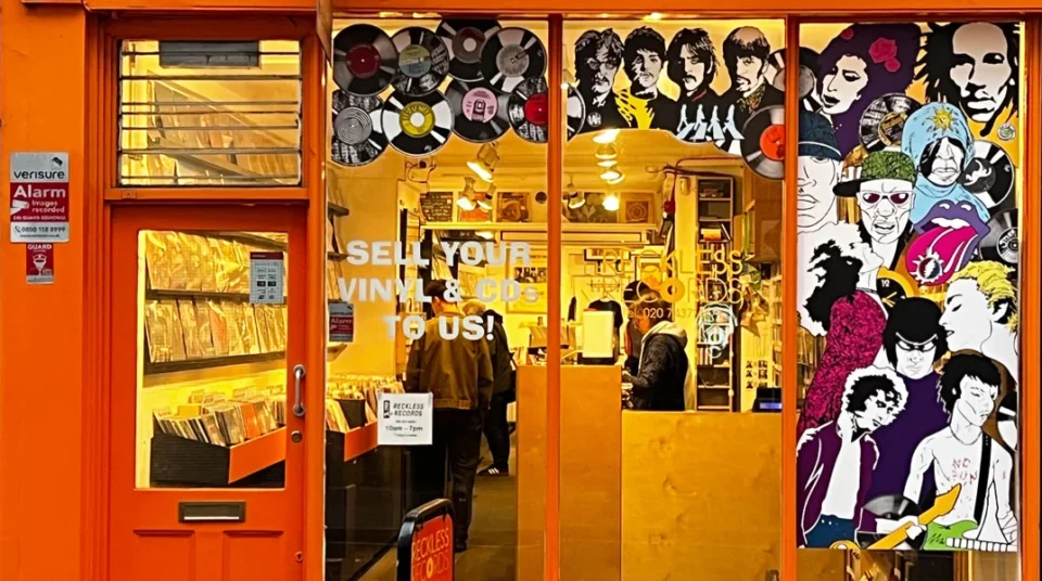 Πριν απ’ όλα, κατευθύνεσαι προς Σόχο. Central Line από Lancaster Gate, κατεβαίνεις Oxford Circus και στρίβεις δεξιά στην Μπέργουικ, τον δρόμο που εικονίζεται στο εξώφυλλο του «(What’s the Story) Morning Glory?» των Oasis. Το Reckless, στον αρ. 30 της Μπέργουικ, μου άρεσε πάντα. Ίσως γιατί εκεί είχα αγοράσει τους πρώτους δίσκους του Bevis Frond που έβαλα στη δισκοθήκη μου. Ομολογώ ότι σήμερα δεν βρίσκω κάτι ιδιαίτερο στα ράφια του, πέρα ίσως από αρκετά ενδιαφέρον reggae υλικό, ίσως και κάποια punk και hardcore πράγματα.
