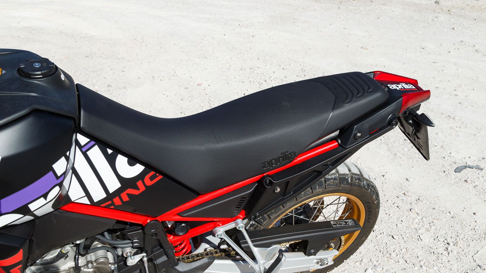 Σαν μία μεγαλεπίβολη adventure μοτοσυκλέτα, η Aprilia Tuareg Rally 660 σε τοποθετεί σε μία όρθια θέση οδήγησης, με το τιμόνι ελαφρώς ψηλότερα από ότι την απλή έκδοση και την απόσταση της σέλας από το έδαφος στα 913 χλστ. Σαφώς το νούμερο αυτό την καθιστά δυσπρόσιτη σε μετριότερου αναστήματος αναβάτες, αλλά η αρκετά λεπτή σιλουέτα της εξισορροπεί κάπως τα πράγματα. Η νέα, ψηλότερη σέλα, έχει λίγο αυξημένο αφρώδες υλικό, συνδράμοντας στην βελτίωση του ελέγχου στην όρθια οδήγηση, ενώ μπορείς με μεγάλη ευκολία να κινηθείς στον οριζόντιο άξονά της. Είναι αρκετά άνετη για τα δεδομένα της κατηγορίας (που δεν αποτελεί η άνεση προτεραιότητα) αλλά σε μεγάλα διαστήματα οδήγησης στον αυτοκινητόδρομο θα χρειαστείς μία έξτρα στάση για ξεμούδιασμα. Η κάθετα τοποθετημένη, φαινομενικά μικρή ζελατίνα προσφέρει ικανοποιητικά επίπεδα ανεμοκάλυψης, ενώ η θέση του συνεπιβάτη είναι εξίσου άνετη με αυτή του αναβάτη, διαθέτοντας χειρολαβές για στήριξη. Το εργονομικό τρίγωνο του αναβάτη όταν είναι όρθιος στα μαρσπιέ έχει μελετηθεί εκτενώς, ώστε να μπορεί να διανύει έτσι μεγάλες αποστάσεις χωρίς ιδιαίτερη κούραση.
