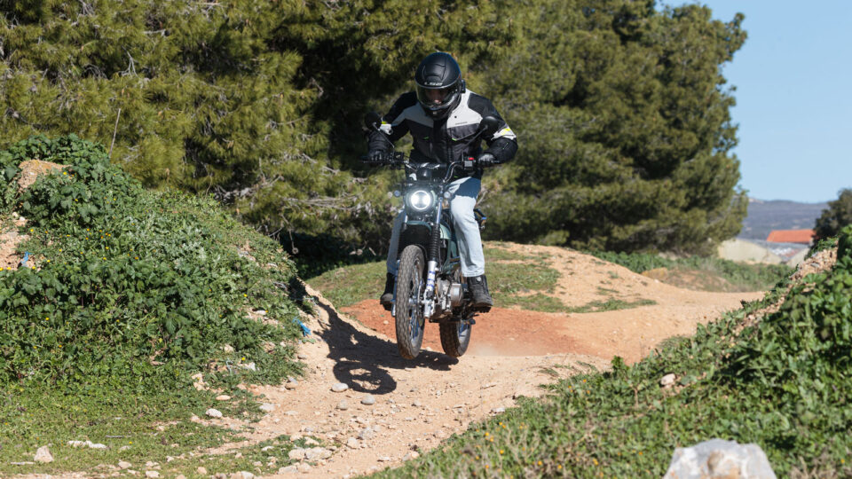 Οι αναρτήσεις, σε συνδυασμό με τα χωμάτινου προσανατολισμού ελαστικά και τον 18 ιντσών τροχό εμπρός, κάνουν εξαιρετική δουλειά στις κακοτοπιές των ελληνικών δρόμων. Λακκούβες, σαμάρια, κακοστρωμένη άσφαλτος και σπασμένα κομμάτια δρόμου αντιμετωπίζονται σχεδόν παιχνιδιάρικα. Εκεί που άλλα παπιά κοπανάνε ή μεταφέρουν νεύρο στο τιμόνι, το Cross X περνάει με άνεση και σταθερότητα. Είναι ξεκάθαρα ένα allaround δίκυκλο, σχεδιασμένο για πραγματικά σκληρές συνθήκες και όχι για ιδανικά σενάρια.