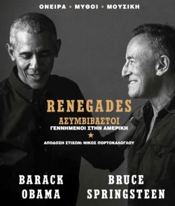 Για αυτή τη συνομιλία και αυτή τη σχέση έχουμε άποψη επειδή αποτυπώθηκε στο βιβλίο που δημιούργησαν μαζί, το Renegades: Born in the USA, όπου παίρνει τη μορφή μιας εκ βαθέων εξομολόγησης ανάμεσα σε δύο φίλους που ο καθένας, με τον τρόπο του, άφησε το αποτύπωμά του στην πρόσφατη ιστορία της χώρας τους. Και μαζί μια εκτενής συζήτηση πάνω στην Αμερική, τη δημοκρατία, τη φυλή, την πατρίδα, την πατρότητα, την αποτυχία και την ευθύνη. Ο Σπρίνγκστιν μιλά όπως πάντα μέσα από ιστορίες και βιώματα, ο Ομπάμα απαντά με πολιτική εμπειρία και στοχασμό. Με αμφιβολίες και οι δύο, συχνά με χιούμορ, πάντα με ειλικρίνεια.