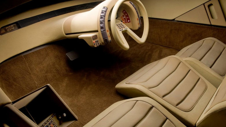 Στο εσωτερικό, η διάταξη ήταν τριών θέσεων, με τον οδηγό του οχήματος να κάθεται στη μέση, ελάχιστα πιο μπροστά από τους επιβάτες. Η κολώνα του (σχεδόν στρογγυλού τιμονιού) εξείχε αρκετά, ήταν εξοπλισμένο με κουμπιά στο πλάι και μία οθόνη στη μέση. Μάλιστα, διέθετε και χειριστήρια για την χρήση του ραδιοφώνου.