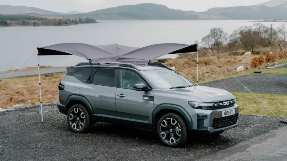 Η πιο πρόσφατη προσθήκη είναι μια μεγάλη τέντα οροφής διαστάσεων 3×3 μέτρων, η οποία τοποθετείται εύκολα σε όλα τα μοντέλα της Dacia που διαθέτουν μπάρες οροφής. Κατασκευασμένη κατά 40% από ανακυκλωμένα υλικά και με τηλεσκοπικά στηρίγματα, στήνεται γρήγορα και προσφέρει έναν προστατευμένο χώρο για χαλάρωση, μαγείρεμα ή προστασία από τον καιρό.