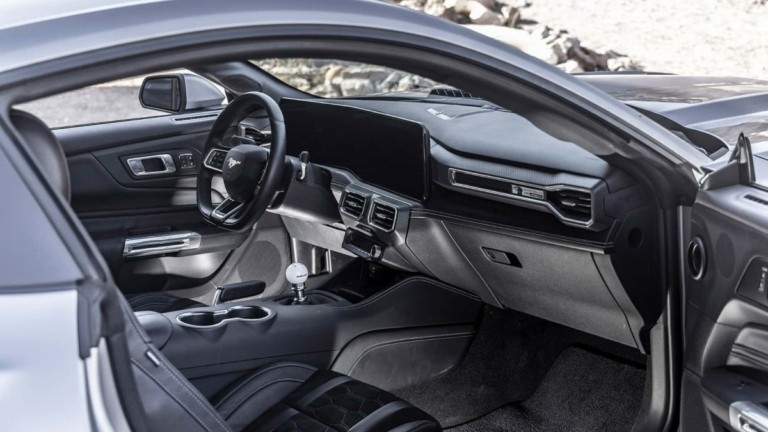 Στο εσωτερικό, οι αλλαγές είναι πιο διακριτικές αλλά ουσιαστικές. Τα καθίσματα διαθέτουν επενδύσεις Alcantara, υπάρχουν διάσπαρτα λογότυπα Shelby, ενώ η αριθμημένη πλακέτα και ο ειδικής σχεδίασης επιλογέας για την χειροκίνητη έκδοση τονίζουν τον συλλεκτικό χαρακτήρα του μοντέλου.