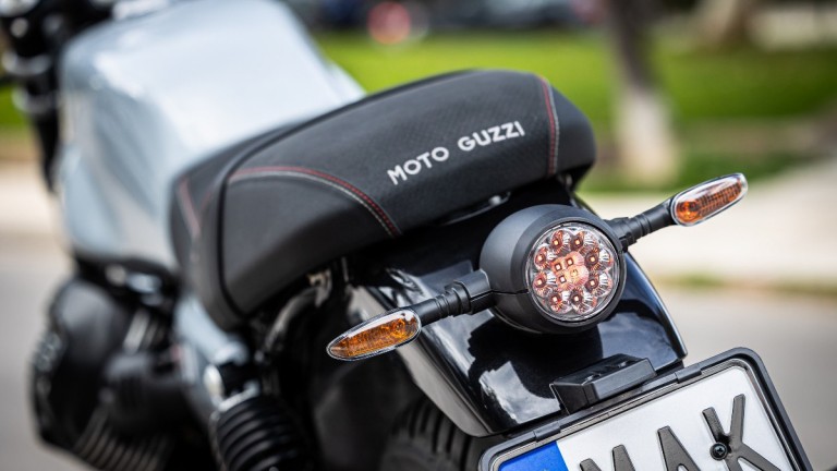 Η θέση οδήγησης είναι βελτιωμένη σε σχέση με την προηγούμενη γενιά των V7. Το σώμα γέρνει περισσότερο προς τα εμπρός, το τιμόνι είναι φαρδύ και τα μαρσπιέ ελαφρώς ψηλότερα από ότι περιμένεις δημιουργώντας σφικτή γωνία στα γόνατα. Η σέλα από την άλλη είναι εξαιρετικά άνετη και συγκρατεί το σώμα σωστά, σε αντίθεση με τον συνεπιβάτη που λόγω της έλλειψης πίσω χειρολαβών αναγκάζεται να κρατηθεί από τον αναβάτη.