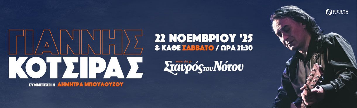 Ο Γιάννης Κότσιρας επιστρέφει στην Κεντρική σκηνή του Σταυρού του Νότου, για άλλη μία χρονιά και θα μας κρατάει παρέα κάθε Σάββατο, από τις 22 Νοεμβρίου.
