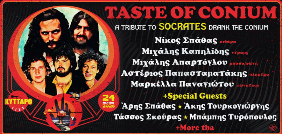 Για το μεγάλο ραντεβού των απανταχού «σοκρατιακών» θα παρουσιαστεί ένα μεγάλο οπτικοακουστικό αφιέρωμα στους Socrates Drank The Conium, όπως ανακοίνωσε το «Κύτταρο» για την Τρίτη 24 Μαρτίου 2026. Επί σκηνής θα είναι το συγκρότημα που ηγείται ο άξιος εκπρόσωπος της μουσικής των Socrates, ο κιθαρίστας Νίκος Σπάθας, γιος του αείμνηστου Γιάννη Σπάθα. Μαζί του θα είναι μέλη που έπαιξαν με τους Socrates, συνοδοιπόροι μουσικοί αλλά και εκλεκτοί καλεσμένοι που συναντιούνται σε μια συναυλία μνήμης και ηλεκτρισμού, τιμώντας την πορεία, το έργο και την κληρονομιά ενός συγκροτήματος που ξεπέρασε τα ελληνικά σύνορα και καθιερώθηκε διεθνώς.