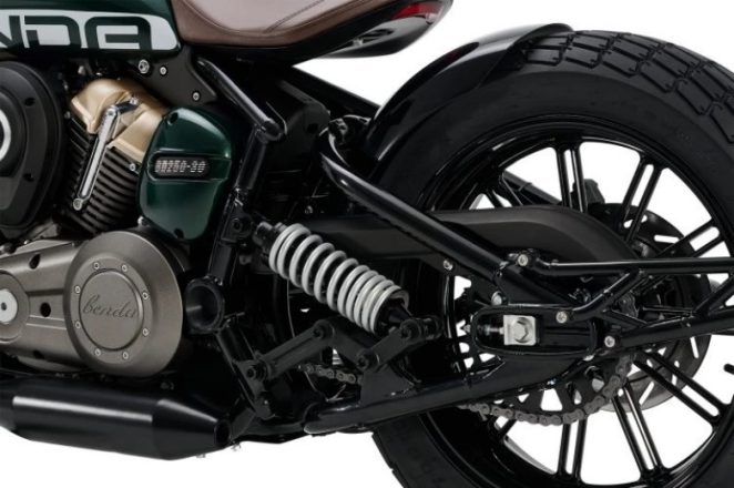 Η Benda Napoleonbob 125 είναι πραγματικά εντυπωσιακή στην κατηγορία των μοτοσυκλετών bobber. Με τη μοναδική ανάρτηση “Multilink” και τον υγρόψυκτο κινητήρα V2, βασίζεται σε καινοτόμο τεχνολογία. Ο κινητήρας αποδίδει 14 ίππους στις 9,500 σ.α.λ. και προσφέρει ροπή 10.3 Nm.