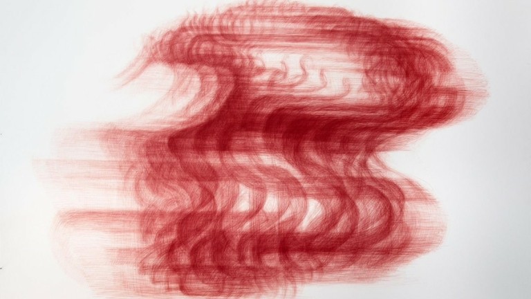 Το βραβευμένο έργο του Περόνε είναι ένα σχέδιο με κόκκινο στυλό διαρκείας, το οποίο ξεχωρίζει για τη δυναμική του, την αίσθηση ταχύτητας και την απόλυτα ελεγχόμενη γραφή. Μέσα από ένα φαινομενικά απλό μέσο, ο καλλιτέχνης καταφέρνει να αποδώσει έννοιες όπως η ακρίβεια, ο ρυθμός και η κίνηση, αξίες άρρηκτα συνδεδεμένες με την ιστορία της Ducati.