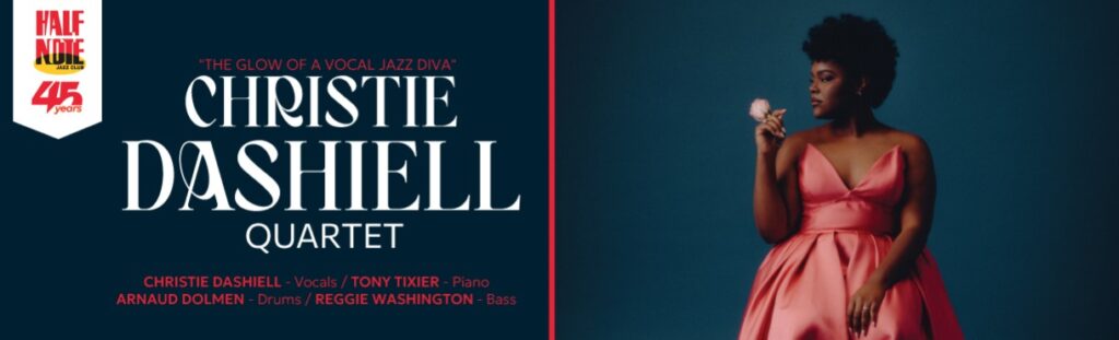Με λάμψη ακόμη από την μεγάλη γιορτή της μουσικής, η σπουδαία Christie Dashiell, έρχεται στην Ευρώπη και μας συστήνεται στην Αθήνα και στην jazz σκηνή της πόλης, από την Παρασκευή 6 έως και τη Δευτέρα 9 Μαρτίου. Μαζί της ο κορυφαίος μπασίστας και συνεργάτης της από το Black Lives, Reggie Washington, ο εκπληκτικός πιανίστας Tony Tixier κι ο απαράμιλλος ντράμερ Arnaud Dolmen. Τέσσερα βράδια στο Half Note Jazz Club, που θα μείνουν στην μνήμη και την καρδιά μας για καιρό, αφού θα έχουμε σε απόσταση αναπνοής, σίγουρα μια νέα jazz ντίβα.