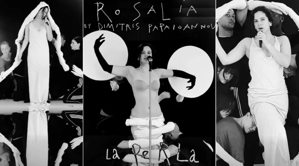 Στα βιντεοσκοπημένα αποσπάσματα που ήδη κάνουν τον γύρο των Social Media, η Ροζαλία περιβάλλεται από χορευτές των οποίων τα πρόσωπα παραμένουν κρυμμένα, αφήνοντας μόνο τα χέρια τους να δημιουργούν ένα γλυπτικό πλαίσιο γύρω από το σώμα της. Η αισθητική του Παπαϊωάννου ήταν διάχυτη: