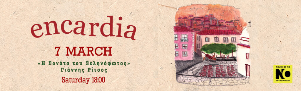 Μετά τη θερμή ανταπόκριση του κοινού, οι Encardia επιστρέφουν το Σάββατο 7 Μαρτίου στις 18.00, στη σκηνή του THEATRE OF THE NO με την επιτυχημένη μουσικοθεατρική απόδοση της «Σονάτας του Σεληνόφωτος» του Γιάννη Ρίτσου. Η ποίηση και η μουσική ενώνονται σε μια καθηλωτική σκηνική εμπειρία, όπου οι στίχοι του Ρίτσου συναντούν τη σύγχρονη μουσική γλώσσα και τη βαθιά μεσογειακή ψυχή των Encardia.