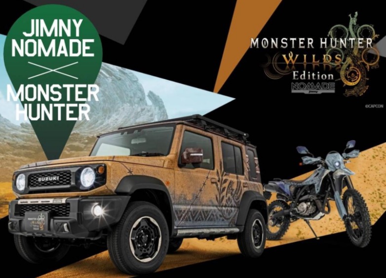 Εκτός από την DR-Z4S Monster Hunter Wilds Edition, η Suzuki παρουσίασε και μια ειδική έκδοση Jimny Nomade Monster Hunter Wilds Edition. Αν και το εξωτερικό δείχνει ωραίο και το Jimny είναι φυσικά ένα ιδιαίτερα αγαπητό όχημα σε πολλές αγορές, η Suzuki αναφέρει ότι η έμπνευση προέρχεται από τα πρόχειρα καταλύματα (pop-up camps) του παιχνιδιού και όχι από κάποιο συγκεκριμένο πλάσμα που μπορεί να συναντήσει κανείς παίζοντας.