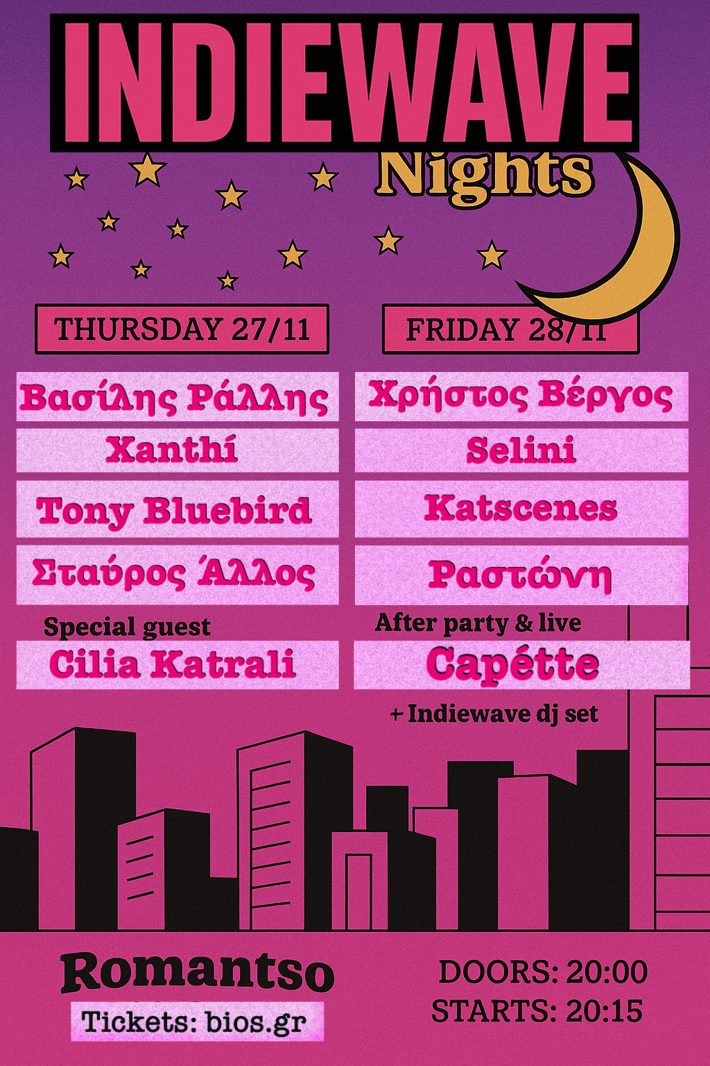 «Indiewave Nights»: Δύο νύχτες γεμάτες indie και alternative ήχους στο Ρομάντσο – 27 & 28 Νοεμβρίου 2025