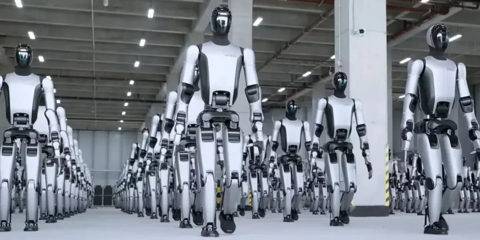 Ταινία επιστημονικής φαντασίας θυμίζει ένα εφιαλτικό για πολλούς βίντεο με εκατοντάδες ανθρωποειδή ρομπότ -εργάτες να παρελαύνουν συντονισμένα.