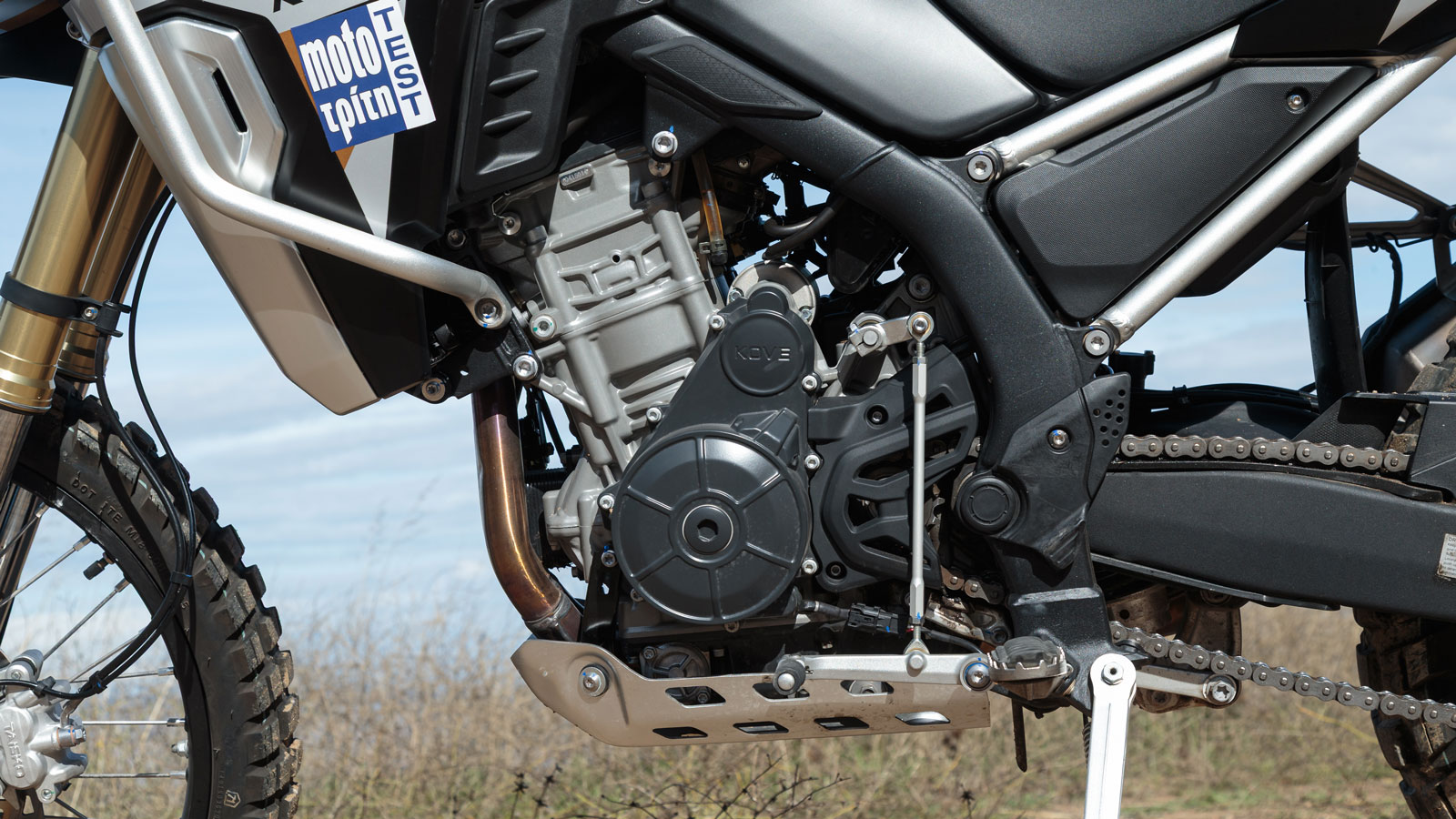 Επίκεντρο του νέου Kove 800X Rally είναι ο κινητήρας του. Ένας δικύλινδρος εν σειρά, υγρόψυκτος κινητήρας 799 κ.εκ. με 2 επικεφαλής εκκεντροφόρους και διαστήματα ανάφλεξης 285°, που του δίνουν μία αρκετά ισορροπημένη λειτουργία κι έναν απολαυστικό ήχο. Διαθέτει μάλιστα αντικραδασμικό άξονα στην κεφαλή ανάμεσα στους εκκεντροφόρους, για την απόσβεση των δευτερευόντων κραδασμών που δημιουργούνται από την παλινδρομική κίνηση των πιστονιών. Με διαδρομή και διάμετρο εμβόλων στα 88×65,7 χιλιοστά, η απόδοση αγγίζει τους 95 ίππους στις 9.000 σ.α.λ. με 79 Nm ροπής στις 7.500 σ.α.λ. κάτι που φέρνει τον λόγο ισχύος/βάρους κάτω από το 2! Είναι μάλιστα το μοναδικό στα μεσαία Adventure που μπορεί να καυχηθεί κάτι τέτοιο. Παρά την σχετικά υψηλή σχέση συμπίεσης στο 13:1 (ίδια με αυτή του Pro), δεν έχουν υπάρξει προς το παρόν αναφορές περί βλαβών και αναξιοπιστίας του κινητήρα, ενώ φαίνεται πως είναι καλοφτιαγμένος και από τον τρόπο λειτουργίας του. Είναι εύστροφος και ισχυρός, χωρίς όμως να έχει υπερβολικούς κραδασμούς. Διαθέτει 6τάχυτο κιβώτιο και υγρό πολύδισκο συμπλέκτη ολίσθησης, ώστε να μην μπλοκάρει ο τροχός σε απότομα κατεβάσματα σχέσεων. Το σύστημα ψεκασμού της Bosch κρατά την κατανάλωση σε χαμηλά επίπεδα, όμως έχει απότομη λειτουργία στην απόκριση του γκαζιού στις χαμηλές στροφές. Σε μεικτές συνθήκες, μετρήσαμε κατανάλωση στα 5, 6λτ./100 χλμ. ενώ στο ταξίδι αυτή κατέβηκε στα μόλις 5. Με το ρεζερβουάρ 19 λίτρων λοιπόν η αυτονομία του ξεπερνάει σε κάθε περίπτωση τα 300 χιλιόμετρα, ενώ μπορεί να πλησιάσει και τα 400.