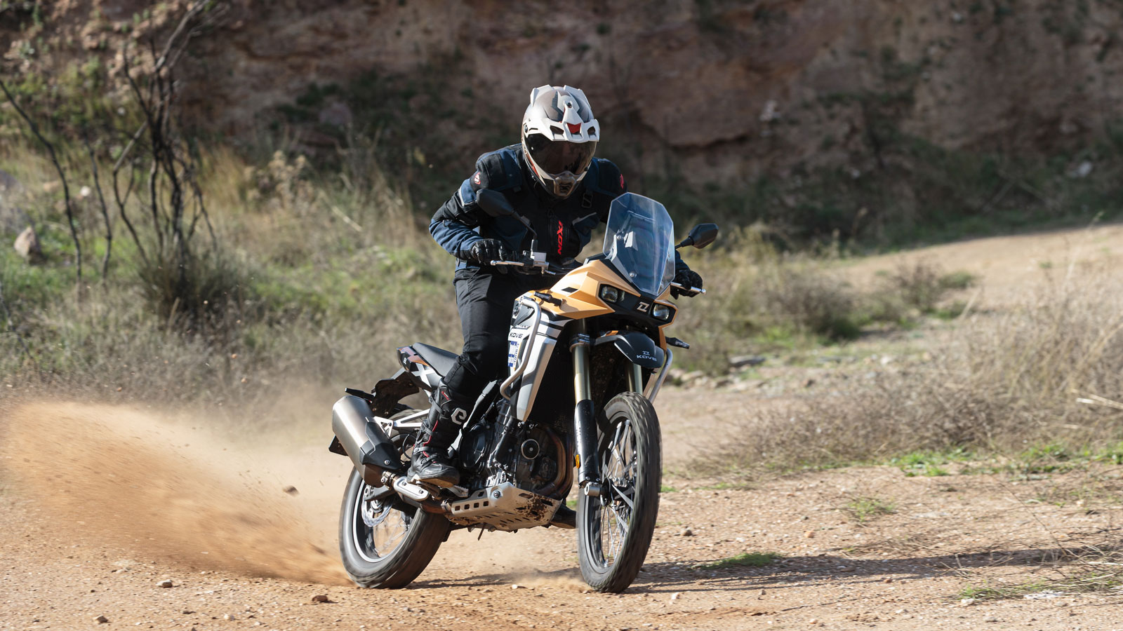 Χαμηλό βάρος, μεγάλες διαδρομές αναρτήσεων και 21-18 ιντσών τροχοί, το τρίπτυχο που κάνει το Kove 800X Rally, απόλαυση στην χωμάτινη οδήγηση.