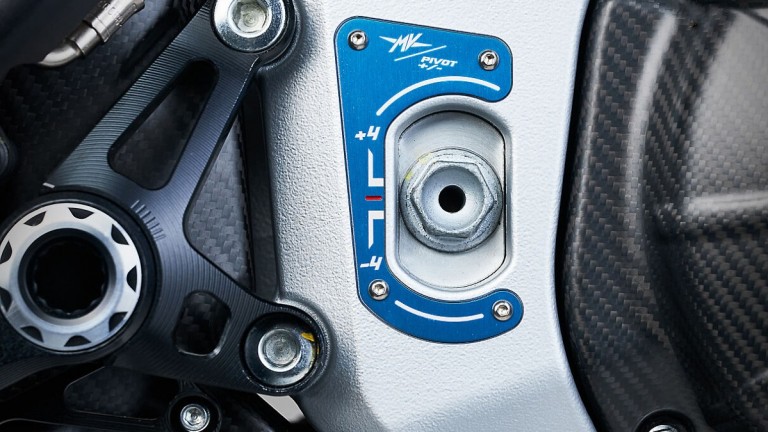 Ξεχωριστό στοιχείο αποτελεί και η νέα ηλεκτρονική ανάρτηση Ohlins Smart EC 3.0, η οποία προσαρμόζεται σε πραγματικό χρόνο, αναλύοντας συνεχώς τα δεδομένα οδήγησης. Το σύστημα συνεργάζεται άψογα με τα ηλεκτρονικά βοηθήματα, όπως ABS και traction control, προσφέροντας υψηλό επίπεδο ασφάλειας και εξατομίκευσης. Από την άλλη, το πλαίσιο είναι χωροδικτύωμα και το μονόμπρατσο ψαλίδι ρυθμίζεται αλλάζοντας τη γεωμετρία της μοτοσικλέτας.