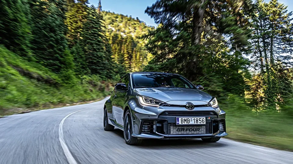 Δεν τον ενδιέφερε ότι στην κορυφή εκείνης της στροφής η άσφαλτος ήταν πλισέ, σαν λινό πουκάμισο που βγήκε από το στεγνωτήριο. Κανονικά το Yaris GR θα έπρεπε να χοροπηδάει σαν φελλός σε φουρτουνιασμένη θάλασσα. Δεν κατάλαβα τίποτα. Δεν μετατοπίστηκε εκατοστό από τη θέση που όρισα.