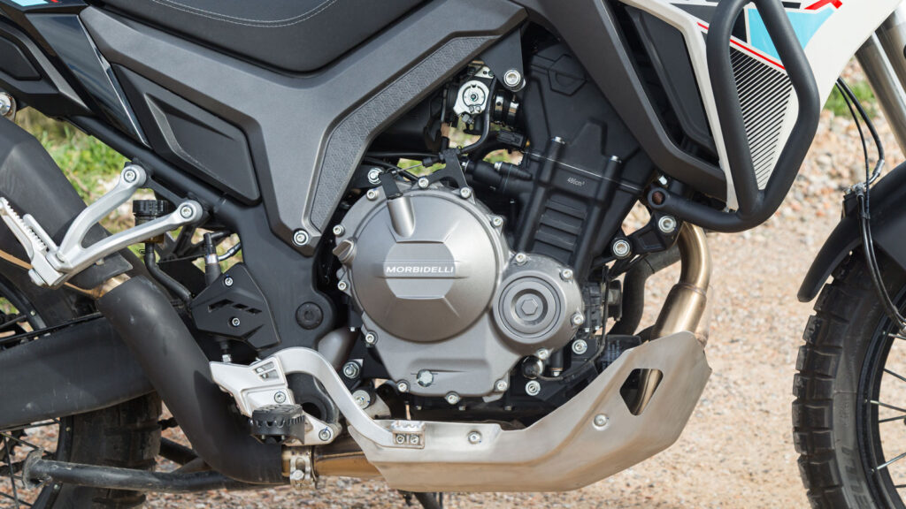 Η Morbidelli T502X εξοπλίζεται με δικύλινδρο εν σειρά κινητήρα 486 κ.εκ. υγρόψυκτο, με διάταξη DOHC και 8 βαλβίδες. Πρόκειται για ένα σύνολο που στοχεύει ξεκάθαρα στην ισορροπία μεταξύ απόδοσης, αξιοπιστίας και καθημερινής χρηστικότητας, τοποθετώντας τη μοτοσυκλέτα στην καρδιά της κατηγορίας Α2.