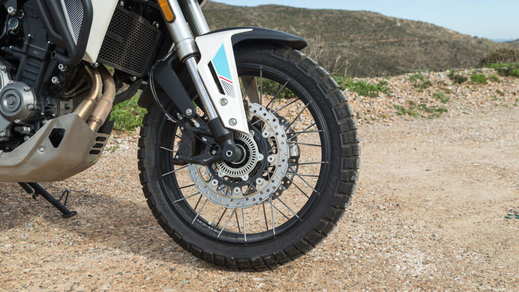 Το σύστημα υποστηρίζεται από ABS της Bosch, με δυνατότητα απενεργοποίησης στον πίσω τροχό, στοιχείο που ενισχύει τον adventure χαρακτήρα και επιτρέπει μεγαλύτερο έλεγχο σε εκτός δρόμου χρήση.