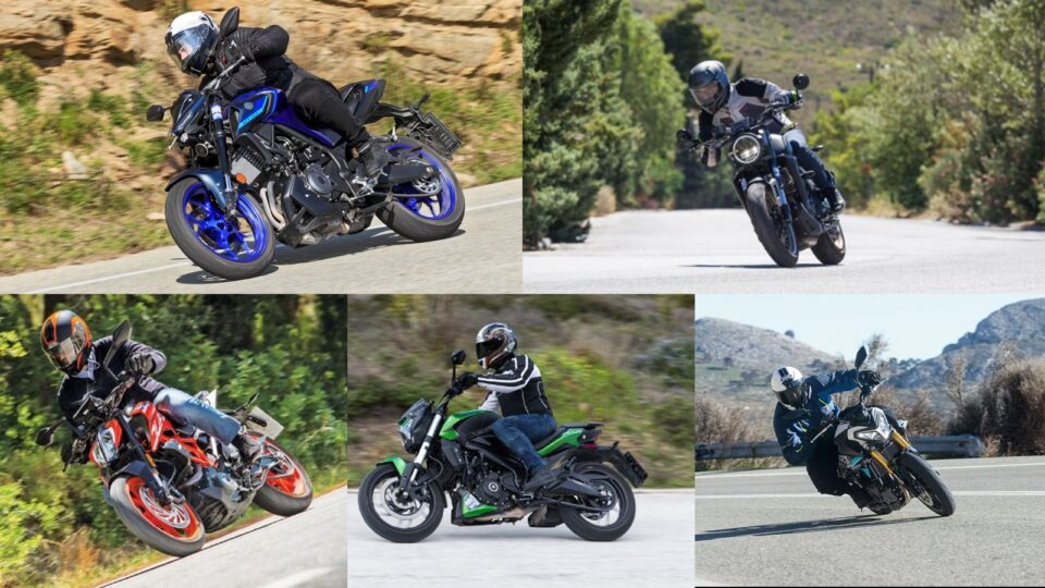 Η κατηγορία συνδυάζει πρακτικότητα αλλά και… διασκέδαση στον στριφτερό επαρχιακό δρόμο. Είτε σε ενδιαφέρει να κάνεις την αρχή σου στον κόσμο των μοτοσυκλετών με διασκεδαστικές επιδόσεις στο γκάζι , να έχεις την δυνατότητα εύκολων και ασφαλών προσπεράσεων ή να σου δίνεται η δυνατότητα να… «κυνηγήσεις» τις στροφές, η κατηγορία μπορεί να ανταποκριθεί με επιτυχία. Με αντίστοιχη επιτυχία μπορεί να ανταποκριθεί και στις απαιτήσεις μιας σπορ commuting προσέγγισης, όπου θα μπορείς να κινείσαι άνετα μέσα στη πόλη διατηρώντας την σπορ αίσθηση στην καθημερινότητα σου. Με βάση αυτά, λοιπόν, τις καλύτερες επιδόσεις στο 0-100 χλμ./ώρα έδωσαν τα 390 Duke και ΜΤ-03 όπου χρειάζονται μόλις 5,7 δευτ. για να «πιάσουν» τα 100 χλμ./ώρα από στάση. Σχεδόν ένα δευτερόλεπτο αργότερο φτάνει και F352, όπου χρειάζεται 6,6 δευτ. Λίγο μετά ακολουθεί το Dominar 400 με 0-100 χλμ./ώρα στα 7 δευτ. ενώ η λίστα κλείνει με το GK350 που χρειάζεται 7,2 δευτ. για το 0-100 χλμ./ώρα.