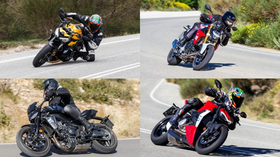 Το βάρος φυσικά θα παίξει καθοριστικό ρόλο αν και λόγω κατασκευής, οι naked μοτοσυκλέτες κρατούν το κέντρο βάρους τους χαμηλά με αποτέλεσμα στις περισσότερες περιπτώσεις να μη γίνεται αντιληπτό από τον αναβάτη. Μόλις το γκάζι ανοίξει βέβαια, το βάρος αποτελεί απλά έναν αριθμό. Τόσο η γεωμετρία όσο και τα περιφερειακά, βοηθούν στις ακαριαίες αλλαγές κατεύθυνσης αλλά και στην άμεση ανατροφοδότηση από το οδόστρωμα. Το χαμηλότερο βάρος στο συγκριτικό μας έχει το Streetfighter V2 το οποίο μετριέται στα 178 κιλά. Με μικρή διαφορά μεταξύ τους ακολουθούν  Street Triple και MT-09, στα 188 και 189 κιλά αντίστοιχα. Τέλος στα 211 κιλά θα μετρηθεί το BMW F 900 R.