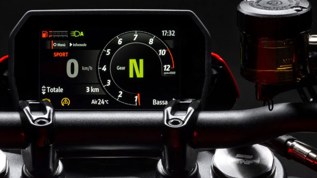 Με βασικό γνώμονα την ευκολία του αναβάτη, η θέση οδήγησης παραμένει όρθια και φυσική, με το τιμόνι σε ιδανική απόσταση ώστε να προσφέρει έλεγχο χωρίς να φορτίζει τους καρπούς, ενώ τα πίσω τοποθετημένα μαρσπιέ σου επιτρέπουν να οδηγήσεις επιθετικά χωρίς να σχηματίζουν ακραίες γωνίες για τα πόδια σου. Η σέλα έχει χαμηλώσει φτάνοντας τα 815 χιλ. για πιο εύκολη πρόσβαση στο έδαφος, υπάρχουν και χαμηλότερες εκδόσεις στον κατάλογο των αξεσουάρ και παράλληλα σε βάζει πιο μέσα στη μοτοσυκλέτα με το στενό εμπρός τμήμα να βοηθά ιδιαίτερα στην αστική χρήση. Σημαντική και η συμβολή των πλαϊνών πάνελ που εκτρέπουν τον ζεστό αέρα από το ψυγείο προς τα έξω, βελτιώνοντας τη θερμική άνεση. Μια νέα TFT οθόνη 5 ιντσών -μεγαλύτερη κατά 16% σχέση με την προηγούμενη γενιά- προσφέρει πιο εύκολη ανάγνωση των πληροφοριών που φτάνουν στον αναβάτη. Η αυτόματη προσαρμογή ημέρας-νύχτας ανάλογα με τις εξωτερικές συνθήκες φωτισμού, εξασφαλίζει μέγιστη ευκρίνεια σε όλες τις συνθήκες, ενώ τα δύο μοτίβα απεικόνισης, Road και Road Pro, αυξάνουν τα επίπεδα εξατομίκευσης. Η περιήγηση στο μενού γίνεται αρκετά εύκολα από τους ποιοτικούς διακόπτες σε σχήμα joystick στην αριστερή πλευρά του τιμονιού ενώ, συμβαδίζοντας με τις τάσεις της εποχής, υπάρχει η δυνατότητα συνδεσιμότητας μέσω Bluetooth με το smartphone για διαχείριση μηνυμάτων, κλήσεων, μουσικής και turn-by-turn πλοήγησης.