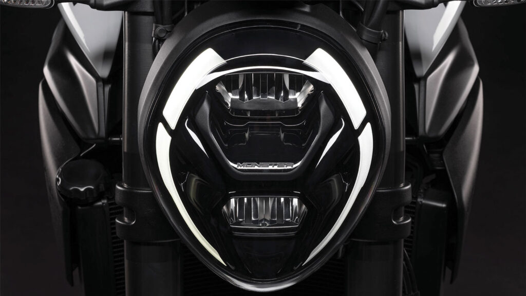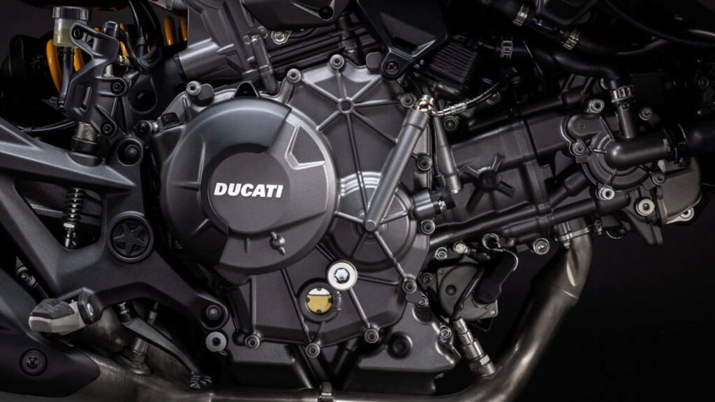 Στον πυρήνα του νέου Monster βρίσκεται ένας δικύλινδρος V2 με χωρητικότητα 890 κ.εκ. και μεταβλητό χρονισμό βαλβίδων IVT (Intake Variable Timing) ο οποίος βελτιστοποιεί την απόδοση σε όλο το φάσμα στροφών, προσφέροντας άμεση ανταπόκριση στο γκάζι, χωρίς να θυσιάζει την ευκολία στην καθημερινή χρήση. Η ιπποδύναμη αγγίζει τους 111 ίππους στις 9.000 σ.α.λ. με τη μέγιστη ροπή των 9,3 kgm να αποδίδεται στις 7.250 σ.α.λ. Η διάταξη αυτή αφενός εξοικονομεί βάρος αφού ο V2 είναι 5,9 κιλά ελαφρύτερος σε σχέση με τον Testastretta των 937 κ.εκ. αφετέρου έχει χαμηλότερα έξοδα συντήρησης αφού τα διαστήματα αλλαγής λαδιών και ελέγχου διάκενων βαλβίδων έχει επιμηκυνθεί στα 15.000 και 45.000 χλμ. αντίστοιχα, σημείο αναφοράς για την κατηγορία. Η μετάδοση γίνεται μέσω ενός συμπλέκτη ολίσθησης υποβοήθησης για καλύτερη κατανομή ροπής στον πίσω τροχό, ενώ το quickshifter 2.0 έρχεται κατευθείαν από την Panigale και βοηθάει στις αστραπιαίες αλλαγές σχέσεων χωρίς συμπλέκτη. Το ηλεκτρονικό οπλοστάσιο περιλαμβάνει traction control, wheelie control, engine Brake και cornering ABS κάτω από την πλήρη εποπτεία μιας IMU 6 αξόνων. Τα 4 διαθέσιμα riding modes Sport, Road, Urban, Wet καθορίζουν την απόδοση και την παρεμβατικότητα των βοηθημάτων, τα οποία ωστόσο μπορούν να παραμετροποιηθούν όπου και όπως θέλεις, ενώ προστέθηκε ένα τέταρτο power mode ώστε να «πέφτουν» ακριβώς με το εκάστοτε επιλεγμένο πρόγραμμα χαρτογράφησης.