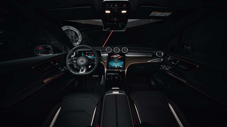 Το εσωτερικό διατηρεί τη γνωστή premium AMG αίσθηση με AMG σπορ καθίσματα, ιδιαίτερο τιμόνι και ψηφιακές οθόνες υψηλής ευκρίνειας, δίνοντας έμφαση στην εμπλοκή του οδηγού και την high-tech εμπειρία.
