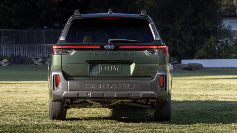 Προς τα πίσω, η κεκλιμένη γραμμή οροφής του παλιού μοντέλου έχει σχεδόν εξαφανιστεί. Το νέο Outback διατηρεί μια όρθια τετράγωνη εμφάνιση με μεγαλύτερα παράθυρα, με αποκορύφωμα την πίσω πόρτα που έχει απότομη κλίση προς το παράθυρο. Ακόμα και οι θόλοι των τροχών έχουν τετράγωνο στυλ παρόμοιο με το Forester.