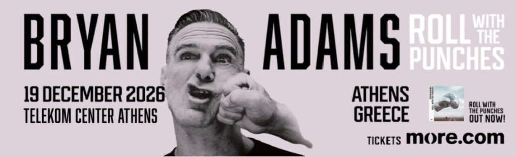 Ο Bryan Adams περιοδεύει παγκοσμίως για πάνω από τέσσερις δεκαετίες, σημειώνοντας επιτυχίες που έφτασαν στο #1 σε περισσότερες από 40 χώρες. Τρία χρόνια μετά την αξέχαστη συναυλία του στο Telekom Center Athens (πρώην ΟΑΚΑ), επιστρέφει στον ίδιο χώρο για μία μαγική βραδιά με αυθεντική ροκ λάμψη που δεν πρέπει να χάσει κανείς. Ό,τι και να πει κανείς για τον Bryan Adams είναι λίγο. Η μακρόχρονη καριέρα του τον έχει οδηγήσει σε πολυάριθμες διακρίσεις, μεταξύ των οποίων ένα Βραβείο Grammy, πολλά American Music Awards, τρεις υποψηφιότητες για Όσκαρ και πέντε για Χρυσή Σφαίρα, ενώ το πιο πρόσφατο album του, Roll With The Punches, είναι υποψήφιο για Βραβείο JUNO 2026 στην κατηγορία Rock Album of the Year. Έχει επίσης τιμηθεί ως Companion of the Order of Canada.