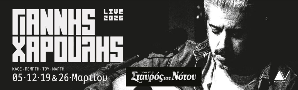 Ο Γιάννης Χαρούλης επιστρέφει στην Κεντρική Σκηνή του Σταυρού του Νότου, εκεί που χτυπάει δυνατά η μουσική καρδιά της πόλης, δεκατρία χρόνια μετά, για 4 μόνο εμφανίσεις, όλες τις Πέμπτες του Μαρτίου.