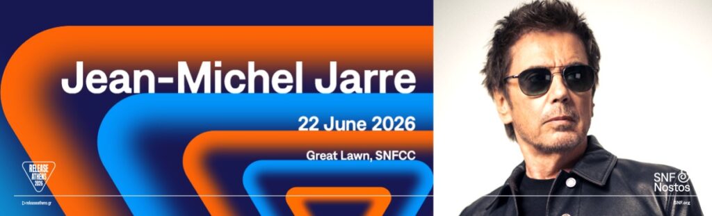 Το Release Athens x SNF Nostos 2026 του Ιδρύματος Σταύρος Νιάρχος (ΙΣΝ) προσθέτει μια τρίτη, συναρπαστική ημέρα στο πρόγραμμά του, μετά τις ήδη ανακοινωμένες με headliners τους David Byrne και Gorillaz. Τη Δευτέρα 22 Ιουνίου, στο Ξέφωτο του Κέντρου Πολιτισμού Ίδρυμα Σταύρος Νιάρχος (ΚΠΙΣΝ), υποδεχόμαστε τον θρυλικό Jean-Michel Jarre, έναν από τους κορυφαίους πρωτοπόρους της ηλεκτρονικής μουσικής, για μια βραδιά που συνδυάζει μουσική, τεχνολογία και θέαμα και υπόσχεται μια εμπειρία που θα μείνει αξέχαστη σε κάθε θεατή.