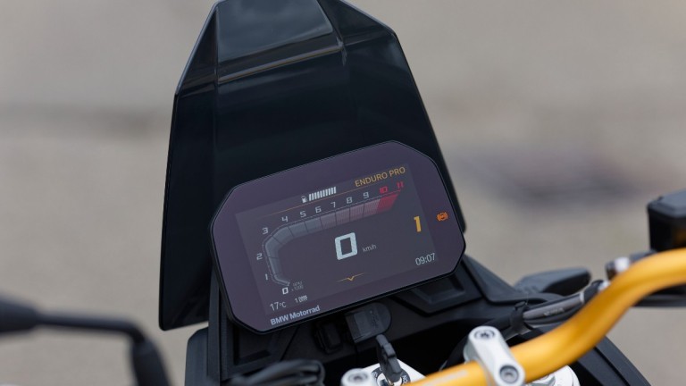 Τα ηλεκτρονικά είναι πλούσια με 4 προγράμματα οδήγησης (Rain, Road, Enduro και Enduro Pro), traction control, σύστημα ελέγχου σούζας και φρένου κινητήρα και ρυθμιζόμενο ABS.