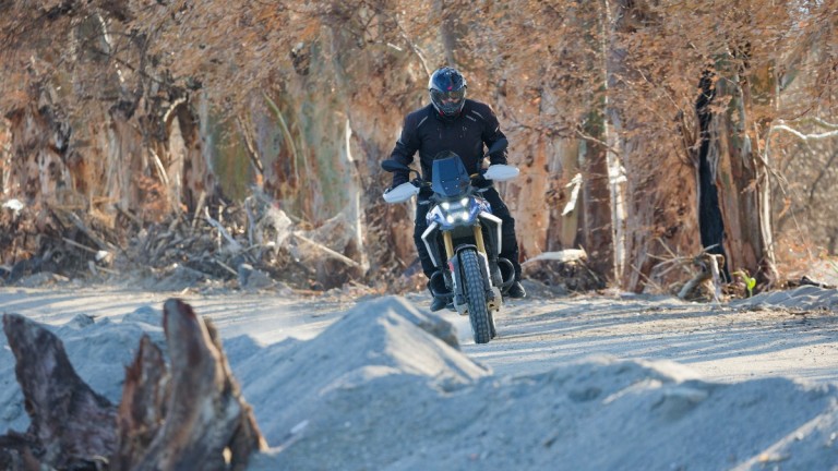 Στο χώμα η μοτοσικλέτα είναι πολύ ευχάριστη, συνεχίζει να είναι εύκολη και δίνει αυτοπεποίθηση στον αναβάτη. Οι αναρτήσεις ξεχωρίζουν και εδώ με καλή ανατροφοδότηση και σωστό «διάβασμα» του τερέν, ενώ η εργονομία επιτρέπει εύκολα να σηκωθείς όρθιος και να οδηγήσεις για αρκετή ώρα στους χωμάτινους δρόμους. Η διαδρομή άλλωστε είχε περίπου 50 χιλιόμετρα χώμα και πραγματικά απολαμβάνεις την οδήγηση χωρίς δράματα και άγχος. Ακόμα ένα στοιχείο είναι η ανθεκτικότητα που εκπέμπει καθώς δείχνει να αντέχει στη σκληρή χρήση και δεν φοβάσαι μην την… κακοποιήσεις σε κάποιο χωματόδρομο.