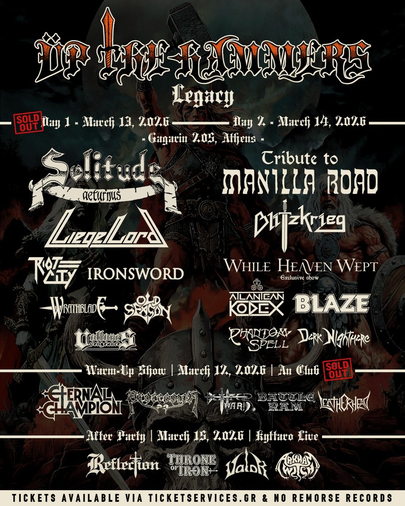 Πριν τους Καναδούς heavy/speed metallers που θα παρουσιάσουν διαφορετικό σετ σε σχέση με την Παρασκευή 13 Μαρτίου στο Gagarin 205, θα βρεθούν κατά σειρά στη σκηνή οι Βρετανοί Arkham Witch, οι Valor, οι Αμερικανοί Throne Of Iron, οι Sacral Rage και οι Reflection.