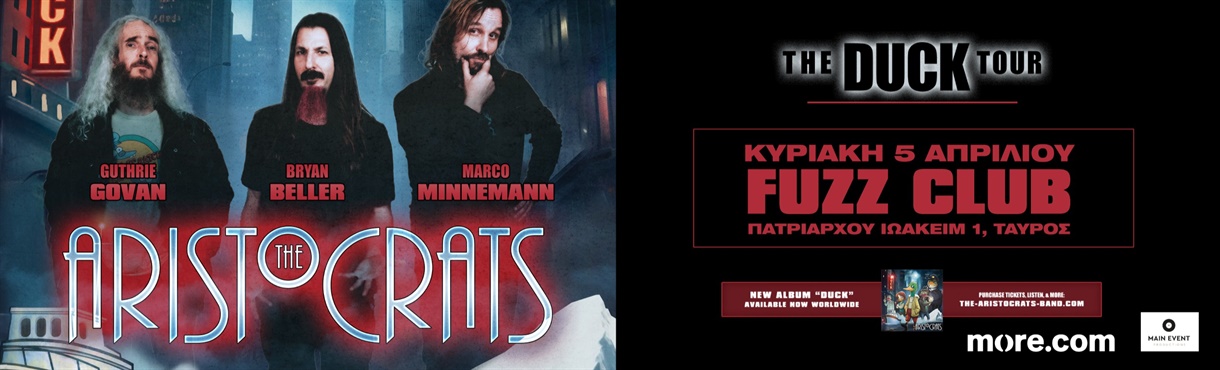 Μετά από μια ξέφρενη περιοδεία σε Αυστραλία, Ασία, Αμερική και μια πρώτη εμφάνιση στο θρυλικό “Cruise To The Edge”, οι Aristocrats με τους Guthrie Govan (κιθάρα), Bryan Beller (μπάσο) και Marco Minnemann (τύμπανα) επιστρέφουν στην Ευρώπη την άνοιξη του 2026 για να ολοκληρώσουν την παγκόσμια περιοδεία Duck.