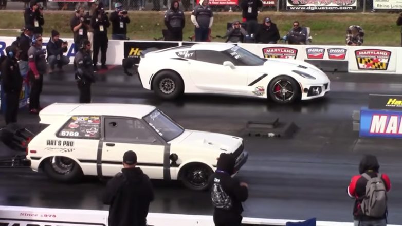 Το συγκεκριμένο Toyota Starlet δεν ήταν φυσικά ένα stock σύνολο, αλλά ένα βαθιά τροποποιημένο drag car, εξοπλισμένο με έναν πανίσχυρο κινητήρα και συστήματα που το έχουν μεταμορφώσει σε πραγματική… «ρουκετομηχανή» (δυστυχώς δεν υπάρχουν περισσότερες τεχνικές λεπτομέρειες για κινητήρα κτλ.). Αντίθετα, η Corvette είναι μοντέλο παραγωγής, γνωστή για την επιτάχυνση και την κορυφαία σχέση κιλών/ίππων.