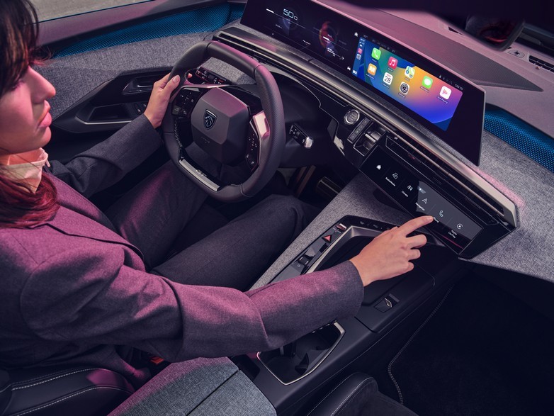 Το νέο Panoramic i-Cockpit ενσωματώνει ένα ανασχεδιασμένο συμπαγές τιμόνι, με μοντέρνο design και απτικά χειριστήρια τελευταίας γενιάς. Τα πλήκτρα αυτά ανιχνεύουν την αφή αλλά ενεργοποιούνται μόνο όταν πατηθούν, αποφεύγοντας ακούσιες εντολές.