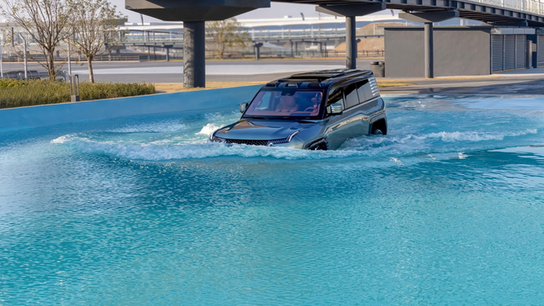 Η πισίνα διάσχισης νερού, μήκους 70 μέτρων, έχει σχεδιαστεί αποκλειστικά για το YANGWANG U8. Μέσω του υποβρύχιου παρατηρητηρίου από γυαλί, οι επισκέπτες μπορούν να δουν το όχημα να κινείται αβίαστα μπροστά, να στρίβει ή να κάνει όπισθεν μέσα στο νερό, χάρη στην πλατφόρμα e4, η οποία έχει επανακαθορίσει τα πρότυπα ασφάλειας σε ακραία σενάρια οδήγησης.