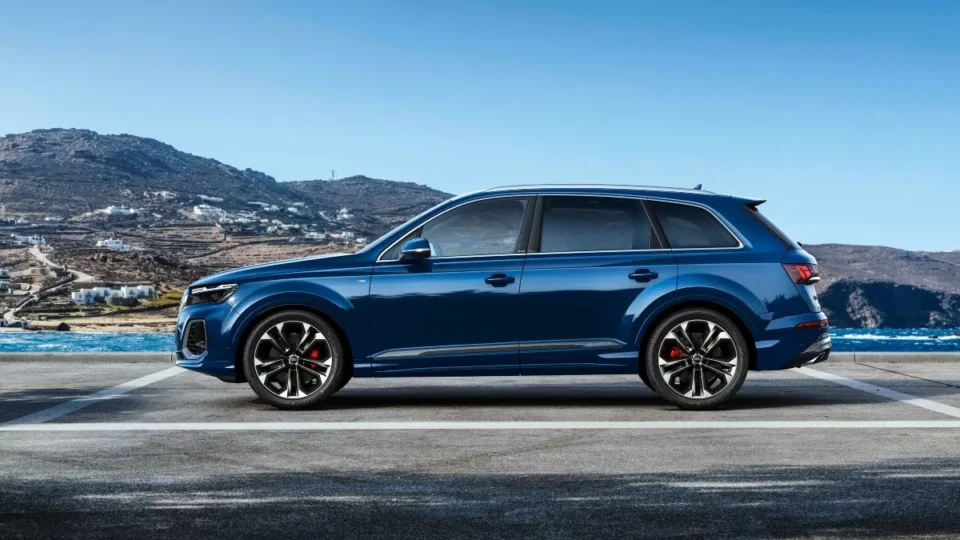 Η πιο δυναμική σιλουέτα, εμπνευσμένη από μικρότερα SUV της μάρκας όπως το Q5, φαίνεται να επιχειρεί μία ισορροπία ανάμεσα στον όγκο που απαιτεί η κατηγορία και στη premium αισθητική που περιμένει το κοινό της Audi.