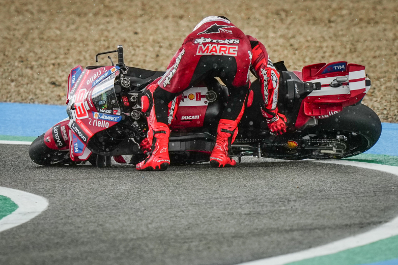 Ξαφνικά, νέο δράμα, αυτή τη φορά για τον Alex Marquez. Έπεσε στο ίδιο σημείο που είχε πέσει και πέρυσι ο αδελφός του, με τη βροχή να μετατρέπεται σε καταιγίδα. Ήταν πλέον ξεκάθαρο, χρειάζονταν βρόχινα ελαστικά. Οι υπόλοιποι μπήκαν στα pits και ο Brad Binder βρέθηκε επικεφαλής, μέχρι που έπεσε και αυτός. Καθώς όλα άλλαζαν, το δίδυμο της Ducati, Francesco Bagnaia και Marc Marquez, πλησίαζε την κορυφή, περνώντας τον ανυπεράσπιστο Fermin Aldeguer που είχε ρισκάρει με slicks.