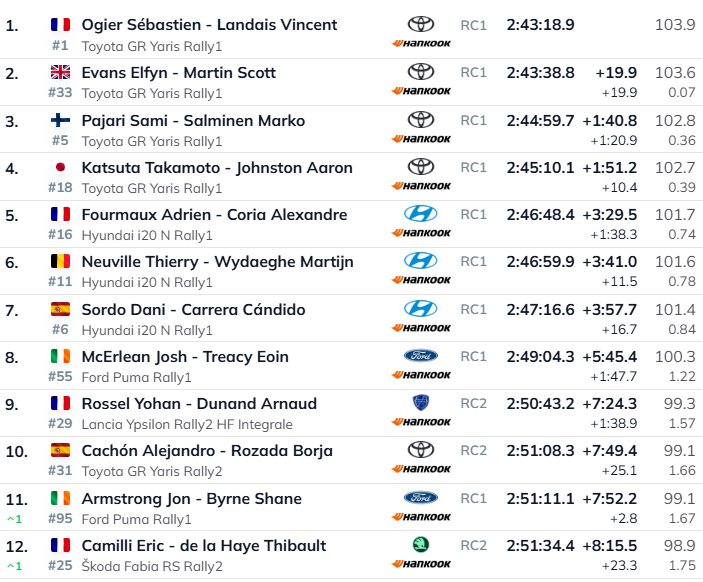 Όγδοος ο Μακέρλιν με Ford ενώ την δεκάδα συμπλήρωσαν δύο πληρώματα της RC2 κατηγορίας. Στην ένατη θέση (και πρώτη της κατηγορίας του) ο Γιοάν Ροσέλ που χάρισε στην Lancia την δεύτερη φετινή νίκη της. Δέκατος ο Κασόν με Toyota. Επόμενος αγώνας, σε δύο εβδομάδες, το Ράλλυ Πορτογαλίας.