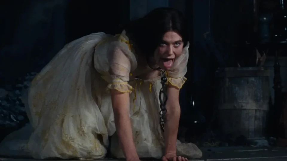 Σε μια σκηνή που έγινε viral, η Ιζαμπέλα εμφανίζεται με κολάρο σκύλου, στα τέσσερα, ενώ ο Χίθκλιφ της λέει να «μείνει», επιμένοντας ότι «της αρέσει», με εκείνη να χαμογελά με τρόπο που περιγράφεται ως «μανιακός».