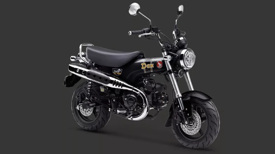 Αρχικά, το ST125 Dax που επέστρεψε δυναμικά το 2023, διατηρεί αναλλοίωτη τη φιλοσοφία του αυθεντικού μοντέλου των ’60s, με το χαρακτηριστικό πλαίσιο «Dachshund», το ψηλό τιμόνι και τους μικρούς τροχούς 12 ιντσών.