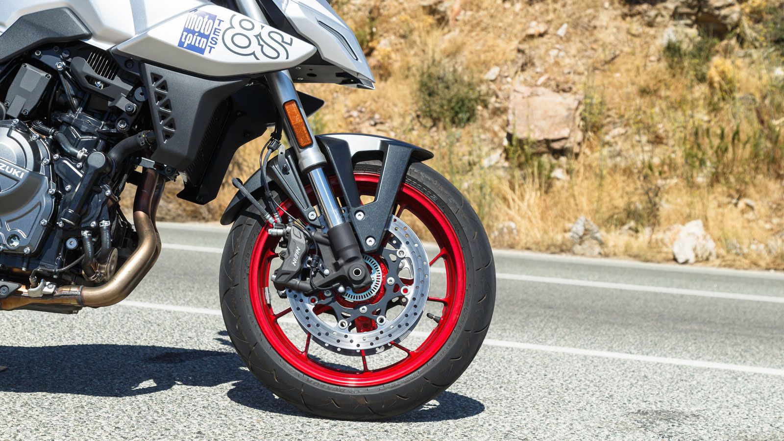 Εάν λοιπόν μπορείς να συμβιβαστείς με τον κλασικό “εχθρό” των γυμνών στην εθνική που δεν είναι άλλος από τον αέρα, θα μπορέσεις να ταξιδέψεις άνετα και στον αυτοκινητόδρομο, ενώ το αναπόσπαστο κομμάτι των καθημερινών μετακινήσεων, γίνεται από καθαρά διαδικαστικό, διασκεδαστικό. Οι αλλαγές που έχει δεχθεί το μοντέλο για να πληρούνται τα Euro5+ πρότυπα είναι εμφανή από την στιγμή που θα πατήσεις την μίζα, καθώς παρά την εξαιρετική χροιά του κινητήρα, ο ήχος που καταφέρνει να βγει από την εξάτμιση είναι “φιμωμένος” και αρκετά χαμηλής έντασης. Το Traction Control είναι ένα ακόμη στοιχείο το οποίο θα έπρεπε να αποτελεί παράδειγμα προς μίμηση για άλλες εταιρείες, καθώς είναι ένα από τα πιο καλορυθμισμένα που θα βρεις σε γυμνή μεσαία μοτοσυκλέτα (και όχι μόνο) στην αγορά. Δεν επεμβαίνει απότομα, περιορίζοντας την ολίσθηση αποτελεσματικά και «αθόρυβα», χωρίς να το καταλαβαίνεις πολλές φορές. Στην θέση 1 μάλιστα επιτρέπει ένα μικρό ποσοστό ολίσθησης σε ασφαλή επίπεδα, προσφέροντας απόλυτα ομαλή επιτάχυνση. Λειτουργεί και σαν περιοριστής σούζας, ενώ φυσικά μπορεί να απενεργοποιηθεί. Οι αναρτήσεις έχουν σχετικά σφικτή ρύθμιση και σε συνδυασμό με το αφρώδες της σέλας, σίγουρα θα νιώσεις τις πιο έντονες κακοτεχνίες της ασφάλτου, αναδεικνύοντας το σπορ DNA που έδωσε η Suzuki στο GSX-8S. Οδηγώντας όμως σε στριφτερές διαδρομές θα λάβεις την ανταμοιβή σου, με το μπροστινό να δίνει περίσσεια πληροφόρηση στον αναβάτη, χωρίς να εμφανίζει μεγάλη βύθιση όταν πέφτεις στα φρένα και το αμορτισέρ να προσφέρει σταθερότητα σε δυνατές επιταχύνσεις στην έξοδο των στροφών. Οι δυνατότητες τις μοτοσυκλέτας ξεπερνούν κατά πολύ αυτές του μέσου αναβάτη, επιτρέποντάς του να τις εξελίξει πάνω στην σέλα της, ενώ είναι σταθερή σε μεγάλες κλίσεις και υψηλές ταχύτητες. Το λιθαράκι του σε αυτό έχει βάλει το μεταξόνιο των 1,465 χιλιοστών το οποίο έχει φέρει την κατάλληλη ισορροπία μεταξύ ευελιξίας και σταθερότητας. Τέλος η αίσθηση που δίνουν τα φρένα είναι πολύ καλή, με το αρχικό δάγκωμα να είναι ισχυρό χωρίς να τρομάζει και την ακινητοποίηση της μοτοσυκλέτας από τα 100 χλμ./ώρα να έρχεται σε 44 μέτρα σύμφωνα με τις μετρήσεις μας.