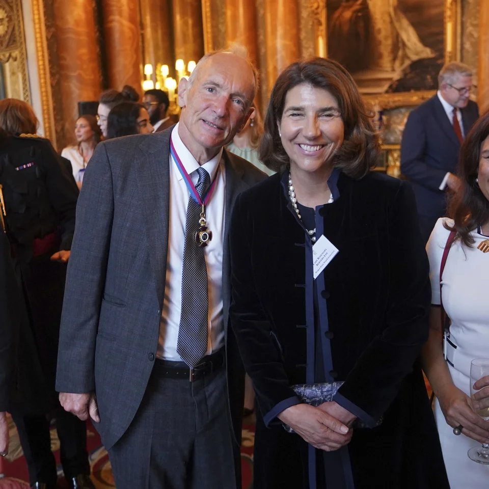 Ο Τιμ Μπέρνερς-Λι με τη σύζυγό του, Ρόζμαρι Μπλερ Λιθ, σε δεξίωση για το Queen Elizabeth Prize for Engineering στο Μπάκιγχαμ, στις 12 Οκτωβρίου 2023.