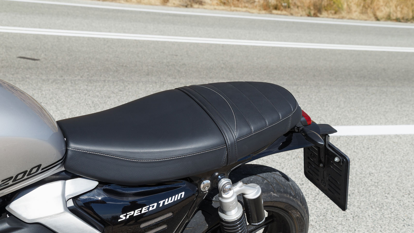 Η Triumph Speed Twin, δημιουργήθηκε όχι μόνο για να αποδίδει φόρο τιμής στο βαρύ της όνομα, αλλά και για να είναι πολυχρηστική, χωρίς να περιορίζει τον αναβάτη της. Η άνετη εργονομία με τα ελαφρώς σπορ γονίδια, επιβεβαιώνει αυτή την επιδίωξη, καθώς το χαμηλό κέντρο βάρους της, η απόσταση από το έδαφος στα 805 χιλιοστά και οι μαζεμένες της διαστάσεις, με το μέγιστο πλάτος στα μόλις 792 χιλιοστά την καθιστούν αρκετά ευκολοδήγητη και φιλική προς τον αναβάτη. Στο σημείο όπου η σέλα συναντά το ρεζερβουάρ μάλιστα, είναι αρκετά λεπτή σε σημείο που κάνει εντύπωση το γεγονός ότι είναι μία 1.200 κ.εκ. μοτοσυκλέτα. Χάρη στη μετακίνηση του τιμονιού λίγο ψηλότερα και πιο μπροστά, το εργονομικό τρίγωνο του αναβάτη έχει βελτιωθεί, ενώ και ο συνεπιβάτης θα κάτσει με σχετική άνεση για τα δεδομένα της κατηγορίας, χάρη στο πλούσιο αφρώδες υλικό του τμήματος της σέλας που του αναλογεί. Η γωνία που σχηματίζουν τα γόνατά του λόγω της θέσης των μαρσπιέ, είναι βέβαια λίγο πιο κουραστική σε μεγάλες αποστάσεις, σε μία μονοήμερη εκδρομή 400+ χιλιομέτρων όμως, καταπολεμήθηκε με λίγες παραπάνω στάσεις για ξεκούραση.