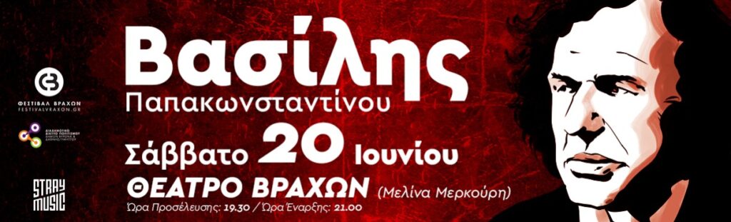 Ο Βασίλης Παπακωνσταντίνου ανεβαίνει στη σκηνή του Θεάτρου Βράχων «Μελίνα Μερκούρη» για τη μεγάλη καθιερωμένη καλοκαιρινή του συναυλία, το Σάββατο 20 Ιουνίου. Μια συναυλία με τραγούδια-σταθμούς για ένα κοινό που τον κουβαλά μέσα του, από γενιά σε γενιά.